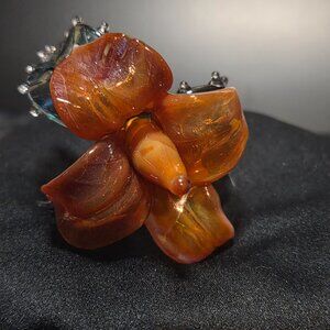Art Glass Flower Paperweight Style: The use of internal, suspended floral canes (millefiori elements forming a flower) and the overall composition are strongly reminiscent of Murano Glass from Venice, Italy, or the fine paperweights produced by studios in Scotland (e.g., Perthshire) or the USA.
