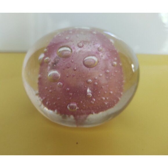 Art Glass Paperweight Artist Signed Pink Blown Bubbles 2 3/4"x 4"