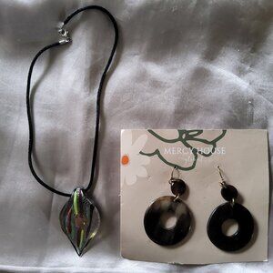 Art Glass Pendant Necklace/Mercy House Horn Halo earrings