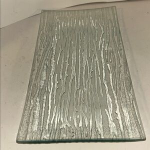 Elegant textured glass tray with a wood grain pattern. Perfect for decor or serving.