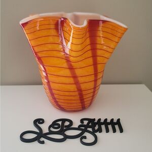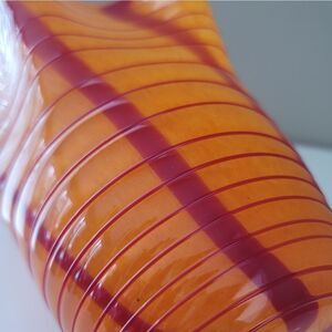 Art Glass Vase Orange Red Wavy White Interior Glass Sculpture #1159