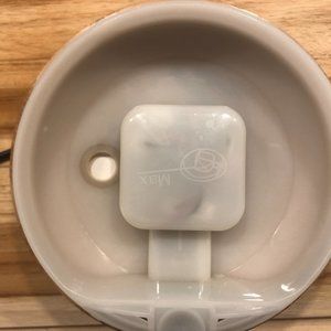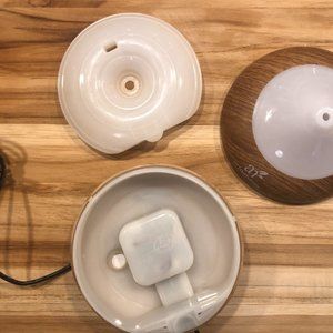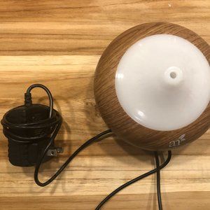 Small essential oil diffuser. It is gently used with no visible markings or wear. It is missing one of the rubber grips on the bottom but this could be fixed and the diffuser is not wobbly when on a hard surface without it. It was mainly used with lavender EO and it does smell a bit like it still. It shouldn't be noticeable while using with any other oil though. It does rotate through several colours but the light can also be turned off.
