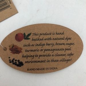 This item is hand batiked with natural dyes such as indigo berry, brown sugar, turmeric or pomegranate peel.