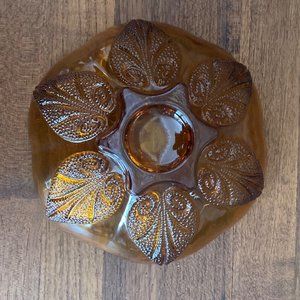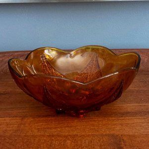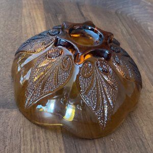 Beautiful vintage art glass bowl with flower design and scalloped edge. Good condition with no chips or cracks present. 7" across and 3" high.