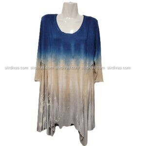 Art of Cloth Tie Dye Blue ,Tan and Off-White Tunic Top