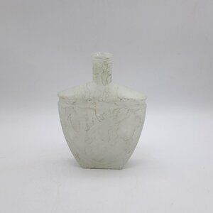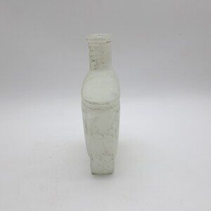 An empty Arte Murano bottle made in the Veneto region of Italy. It is made of smoky glass and is decorated with a Cherub in its center. The glass has been made to look as if it has candle drips on it; it isn't painted but actually seems to be part of the glass.