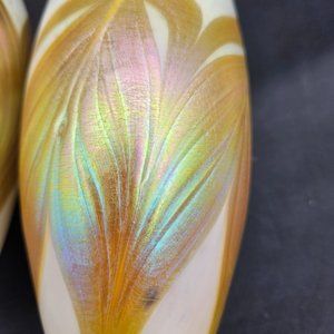 Two stunning signed drinking glasses with beautiful iridescent colour no chips or cracks