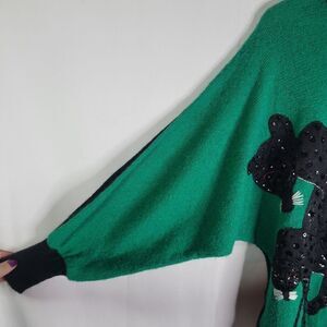 Especially unique green and black sweater / sweater dress featuring a mother and child black panthers embellished appliques design. Eye-catching and timelessly stylish vintage sweater, somewhat comical talking point, I especially live their red eyes 😅 Size L, Artemis clothing label, acrylic/nylon/wool blend - not itchy, EUC