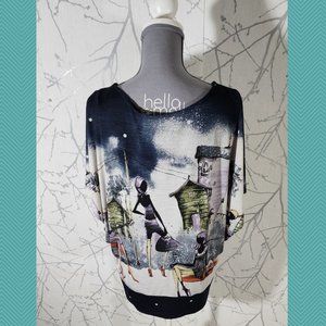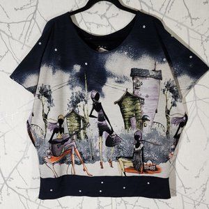 Artex Fashions Night Fashion Scene Print Scoop Neck Top