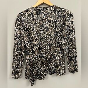 Stylish jacket with a bold pattern. Features a zip-up front.