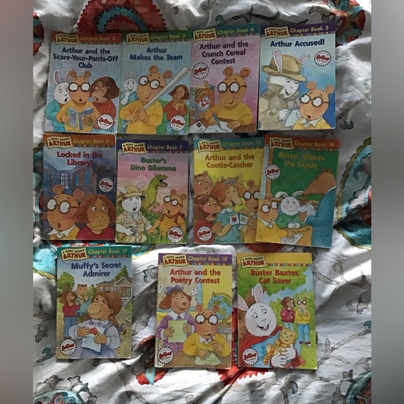 Set of 11 Arthur chapter books featuring colorful covers. Includes various stories with Arthur and friends. In great condition.