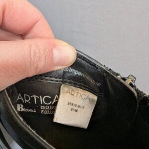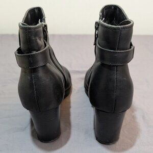 Artica Black Leather Chunky Heel Ankle Boots Size 8.5