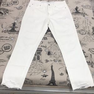 Ripped construction and a frayed hem add a trendy, edgy element to the Rene jeans.