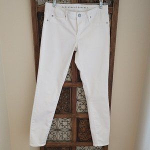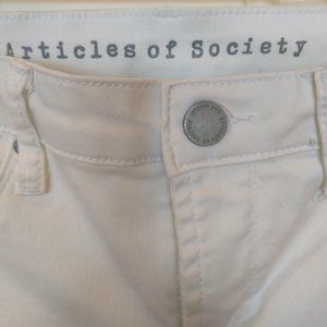 Articles of Society size 26 skinny fit white jeans. Previously worn twice - like new condition. Stretchy soft jeans which feel like you are wearing leggings. Front pockets are sewn-in so no lines. Jeans contour the body from top to bottom with a 28" inseam and total length from top of jeans to bottom = 36". Perfect addition to anyone's spring / summer closet.