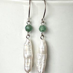Handmade .925 Sterling Silver Rare White Biwa Pearl Hook Earrings