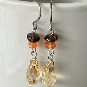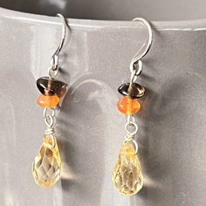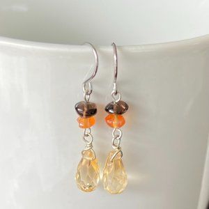 Artisan 925 Sterling Silver Semi Precious Stone Earrings, Citrine Earrings