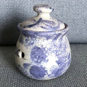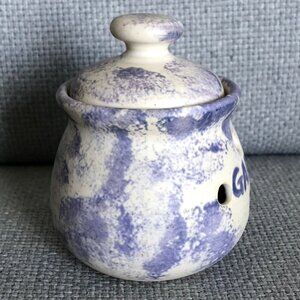Artisan Ceramic Garlic Keeper Blue Lavender White Diameter 2.5 Inches