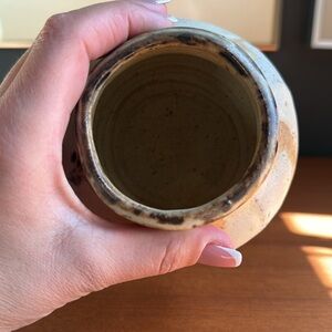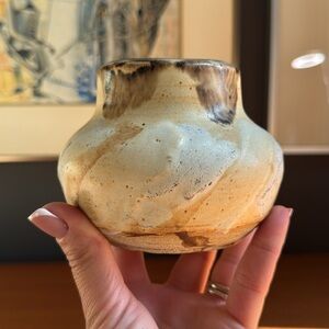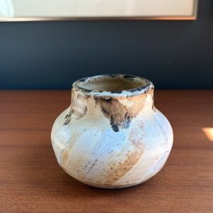 Artisan Ceramic Vase - Cream and Brown handcrafted pottery art signed