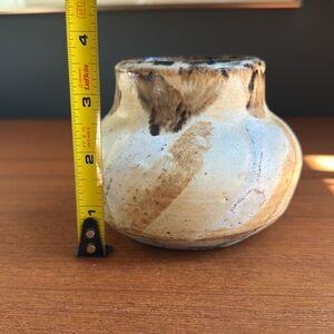 I’m a sucker for everything handmade and this glaze is simply stunning. It’s a small little wall that could hold. Lovely charming little spring flowers very adorable handcrafted there’s nothing like it. No chips no cracks.
