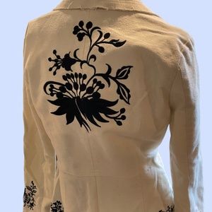 white embroidered jacket size 4, black and white embroidered blazer, cotton spandex jacket women, tailored embroidered jacket, boho chic embroidered topper, women’s embroidered jacket size 4, monochrome embroidered coat.