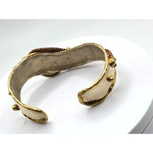 Artisan Mixed Metal Cuff Bracelet Brass Copper Silver Tone Boho Statement