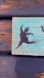 Playful wall art with humorous text. Teal background and black silhouettes. Adds fun to any room.