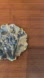 This artistic ceramic plate features a stunning blue floral design with luxurious gold accents. Perfect for adding a touch of elegance to your home decor.