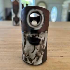 Unique set of three artistic ceramic Features intricate designs in black and brown tones. Perfect for home decor.