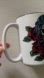 Enjoy your favorite beverage in this artistic mug featuring a striking skull design with red and teal accents. Perfect for adding a touch of creativity to your daily routine.