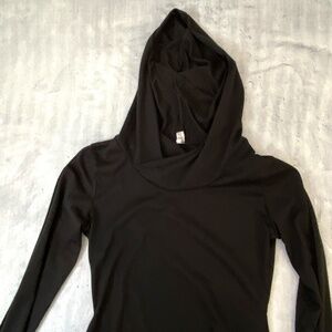 Artistic Taste Cross Neck Hooded Long Sleeve Top with Thumb Holes Sz Med Black