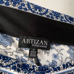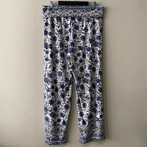 Artizan Robin Barré Blue White Floral Print Print Wide Leg Pant