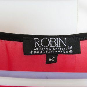 Bright red see-through 100% Polyester chiffon with black cuffs and black around neckline.