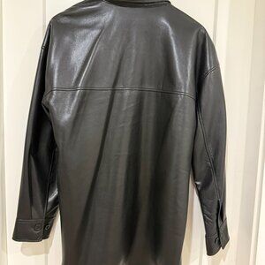 Details: This is a button-up shirt jacket with dropped shoulders and a rounded hem. It’s made with UnReal Leather — our timeless, innovative fabric with an authentic drape and soft sheen. Looks and feels so real, it’s kind of unreal.