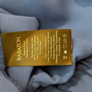 Size small, small snag on left side but only noticeable up close. Otherwise, great condition. 100% polyester.