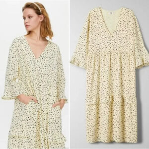 Artizia Little Moon Spritz Ruffle Tired Maxi Dress Pale Yellow Size Medium