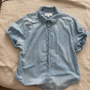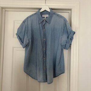 Light wash Denim Forum shirt from Aritzia. Fits looser but still has good shape. Soft denim. Perfect for summer. Wear open over a tank or buttoned up.