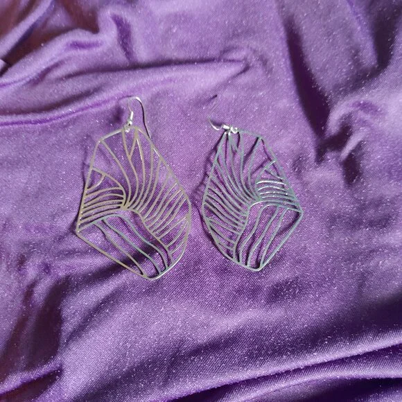 A beautiful pair of silver earrings, oddly shaped with wavy lines throughout. Perfect for making an statement!