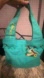 Vibrant turquoise tote with signature Ed Hardy floral and bird design. Perfect for a bold style statement.