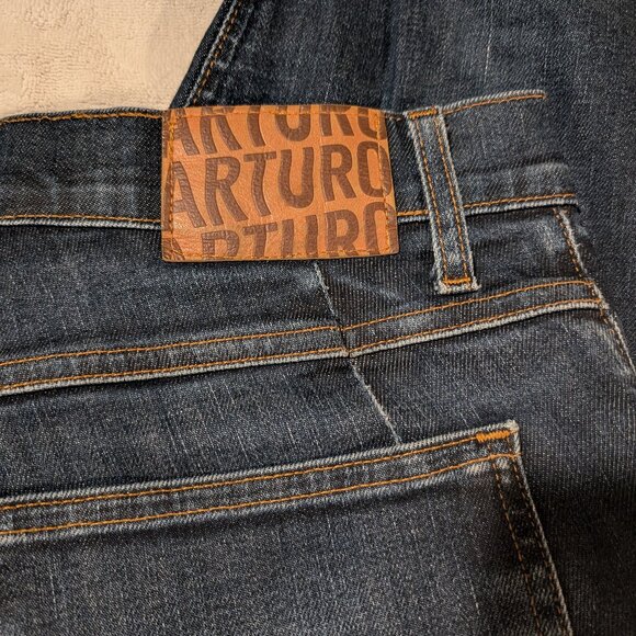 Canadian made raw denim, skinny fit. taken in a bit at the waist by Arturo, maybe closer to a 35 waist