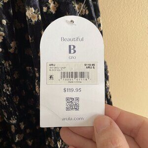 Arula B Maxi Dress Woman 2X Dark Floral Smocking Tiered Puff Sleeve Goblin Witch