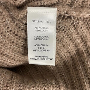 Wear it your way! Could be off the shoulder or not. Cozy taupe coloured batwing sweater with silver metallic thread throughout.