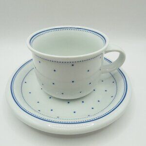 Arzberg Lagune Coffee Tea Mug Cup & Saucer Blue Dots White Stoneware Germany