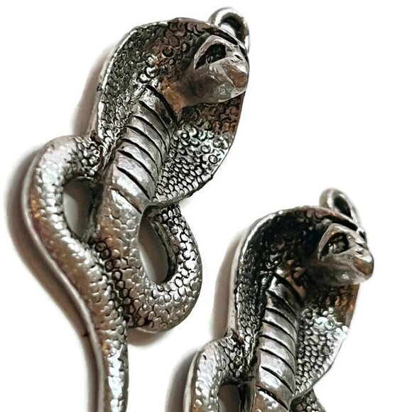 Antique Silver Alloy Cobra Snake Pendant DIY Necklace Craft Jewelry 2/PK.