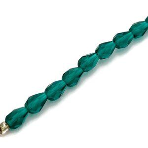 6.5mm x 4.5mm Emerald Green Faceted Drop Czech Glass Beads.