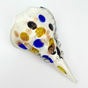 Large White Goldflake Handmade Lampwork Glass Conch Pendant about 65mm x 35mm.