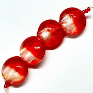 As Low As $2 Light Siam Red Silver Lined Handmade Lampwork Lentil Beads (4)