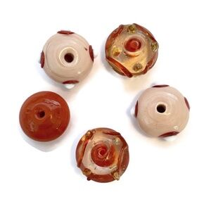 As Low As $2 Peach and Burnt Orange Handmade Lampwork Artisan Rondelle Beads (5)