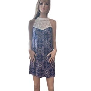 As U Wish Rayon & Lace Shift Choker Dress with Keyhole Close Aztec Floral M-L