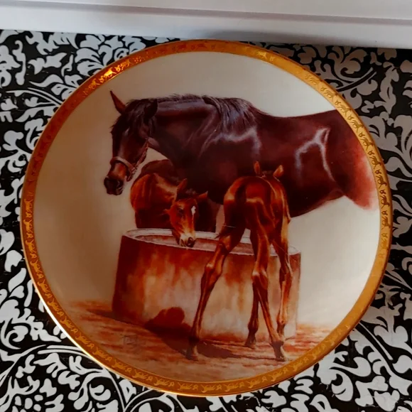 "the water trough mare foal horse"