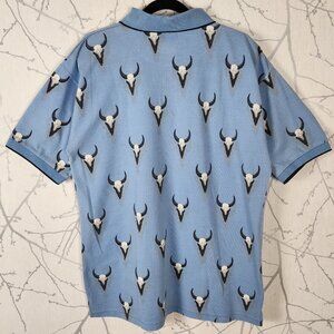Ash Creek Blue Steer Head Print Cotton Blend Polo Shirt